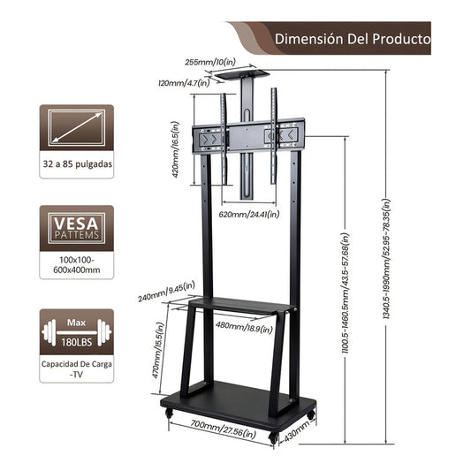 Soporte Tv Movil Con Ruedas 32 A 70 Base Pedestal Generico Negro