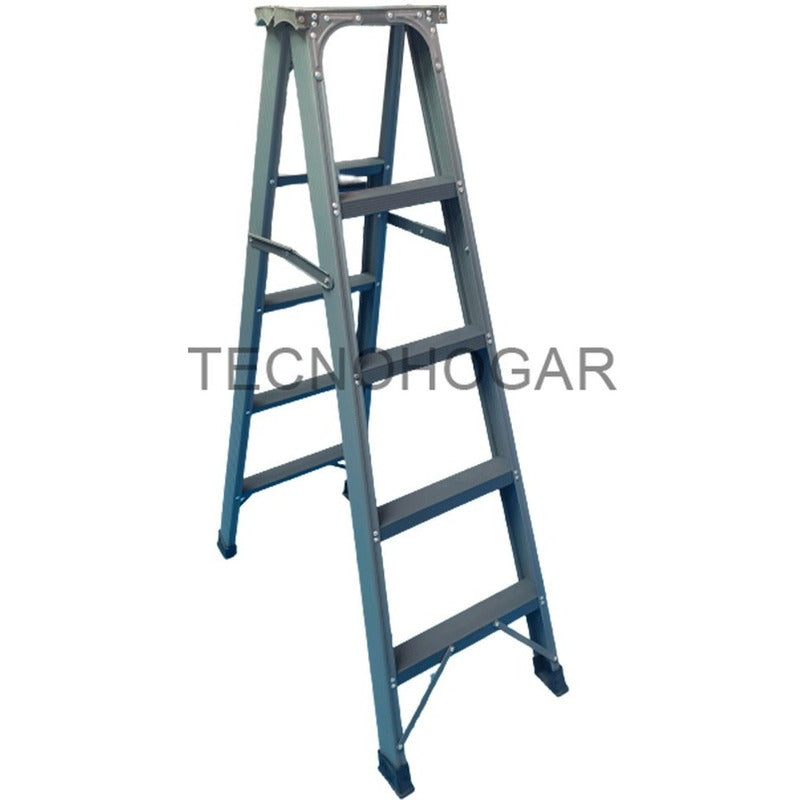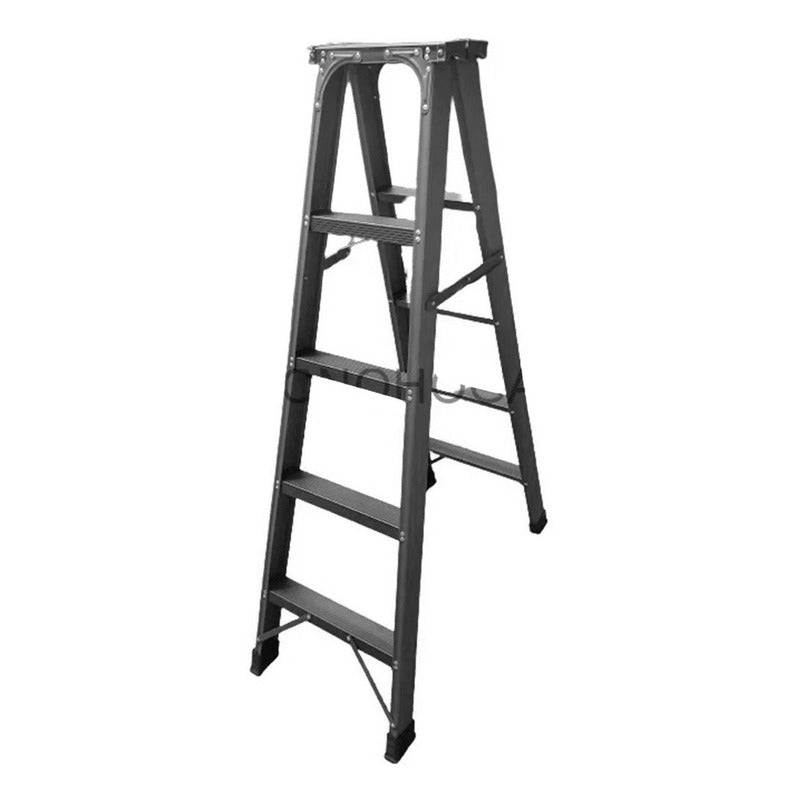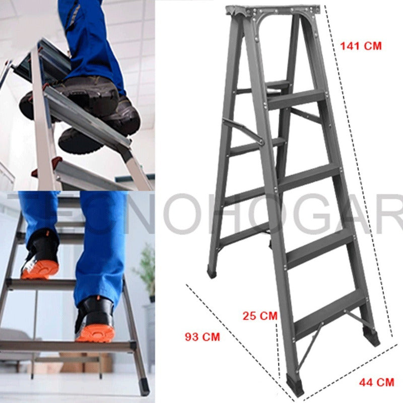 Escalera Plegable Reforzada Metálica 4 Peldaños Gris Oscuro