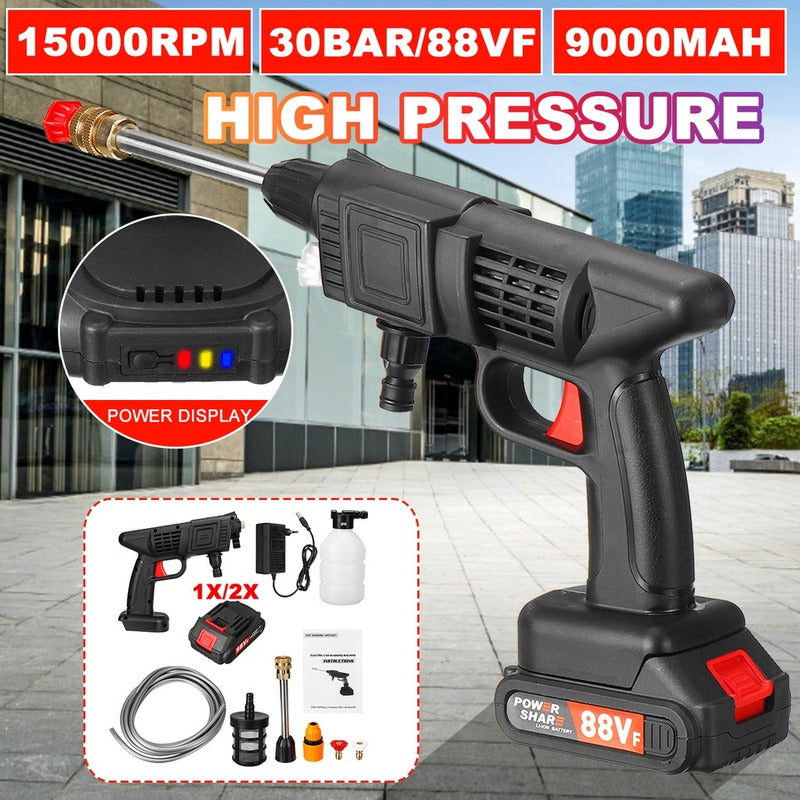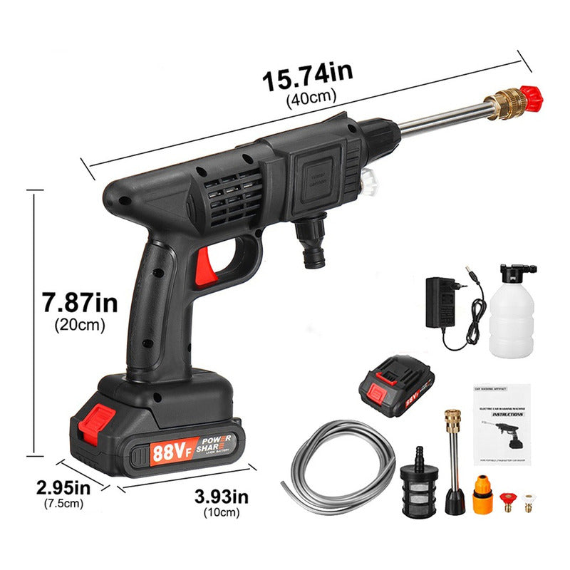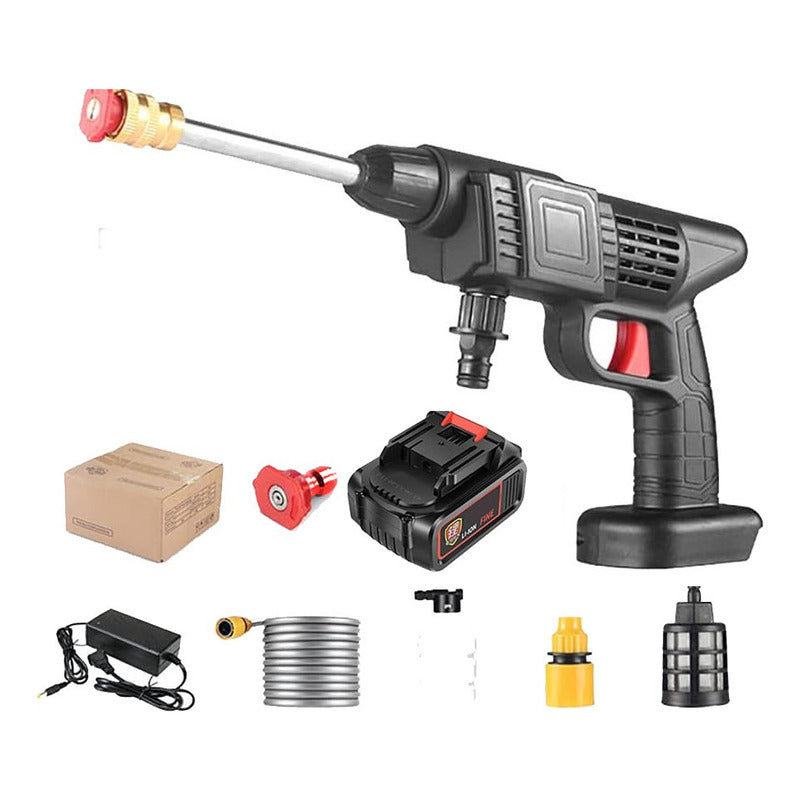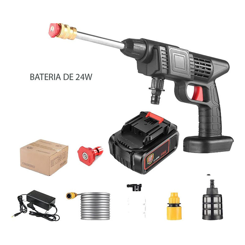 Si tiene alguna consulta o inconveniente sobre nuestros productos y desea una respuesta mas rapida puede contactarnos en la mensajería interna de la venta antes de iniciar un proceso de devolución o reclamo para poder asistirle con su compra. Si hacemos Factura o Boleta, puede enviarnos su información fiscal al momento de recibir su compra y recibirá su factura digitalmente por el mismo medio. Voltaje de la batería: 48V Material: plástico de ingeniería Voltaje del cargador: CA 100-240V 50/60 Hz Potencia: 240 W Presión del producto: 35 bar/435 PSI Flujo de agua: 4 L/min Altura de autocebado: 3 metros Características: - Uso flexible, fácil de limpiar. - Batería de ion de litio de 25V, fácil de controlar. - Ligero y conveniente, larga duración de la batería. - Mango cómodo fácil de usar, agarre a largo plazo es sin esfuerzo. -Ideal para limpiar tu auto, moto, bicicleta. -Para tu hogar: limpiar puertas ventanas, ventanales u otros objetos del hogar. - Puede limpiar en cualquier lugar que haya agua, incluido el uso de un cubo, botella, arroyo o piscina. - Pantalla fina de acero inoxidable , alta eficiencia y filtración profunda, doble filtración profunda de impurezas en el agua, larga vida útil de la bomba de El paquete incluye: 1 x lavadora de coches 1 x barril de pistola de agua de varilla dividida 1 x olla de espuma 1 x tubería de agua 1 x conexión de agua 1 x filtro 1 x cargador 1 x batería de litio