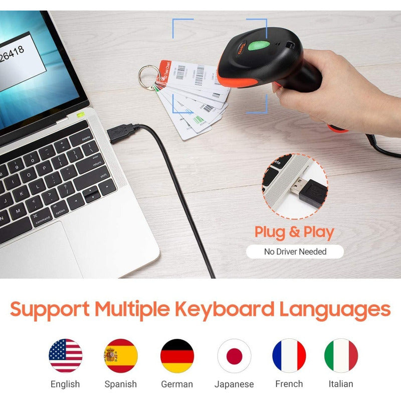 Lector Escáner De Código De Barras Inalámbrico 2.4g Pistola Negro Usb