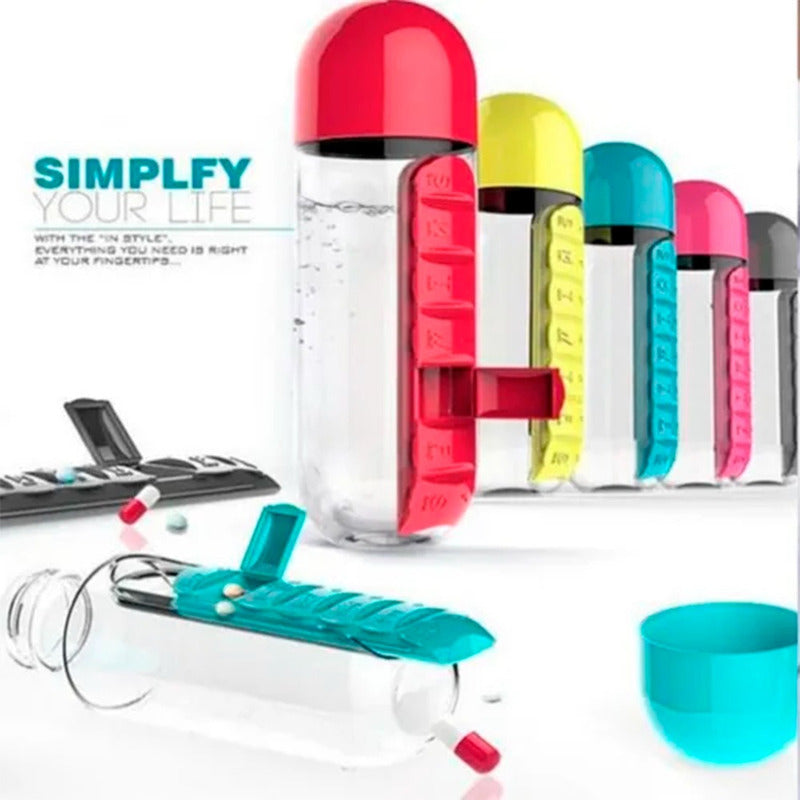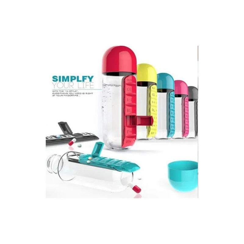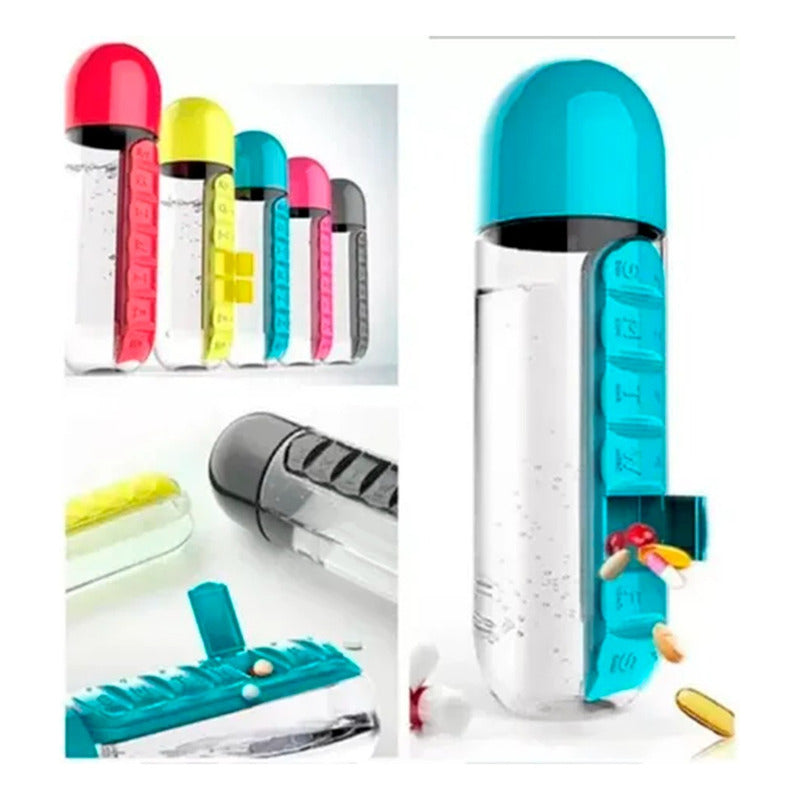 Botella Pastillero Embase 600ml Semanal Vitaminas Portatil Agua