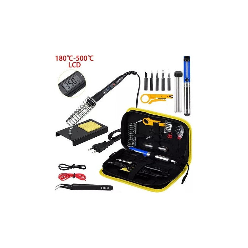 Si tiene alguna consulta o inconveniente sobre nuestros productos y desea una respuesta mas rapida puede contactarnos en la mensajería interna de la venta antes de iniciar un proceso de devolución o reclamo para poder asistirle con su compra. Si hacemos Factura o Boleta, puede enviarnos su información fiscal al momento de recibir su compra y recibirá su factura digitalmente por el mismo medio. Kit Soldador Cautín Punto Lápi Regulador Temperatura 60W Especificación: Voltaje de trabajo: 220V Potencia: 60W Temp Rang: 200 - 450 ¿ Pinza: ESD-15, ength 4.7inches Soporte para Soldador: Acero Consejos modelo: serie 900M Bomba desoldadora: Aleación de plástico y aluminio. Bolsa de transporte: cuero PU Paquete incluido: Soldador x 1 Bomba desoldadora x 1 Diferentes puntas de soldador x 5 Tubo De Alambre De Estaño x 1 Soporte de soldadura de hierro x 1 Pinzas x 1 Pelacables Cutterx 1 Alambre electronico 24awg x 2 Bolsa de transporte de PU x 1 Consejos: Tenga mucho cuidado cuando use las herramientas para evitar pinchazos u otras lesiones. Será mejor que lo mantenga en un lugar donde los niños no puedan alcanzar. La plancha se calienta rápidamente, por lo tanto, seleccione una temperatura adecuada. Trabajar durante largas horas y altas temperaturas puede acortar su vida útil. No permita que la plancha funcione al ralentí a temperaturas operativas durante períodos prolongados. Esto podría quemar el soldador e incluso otras cosas.