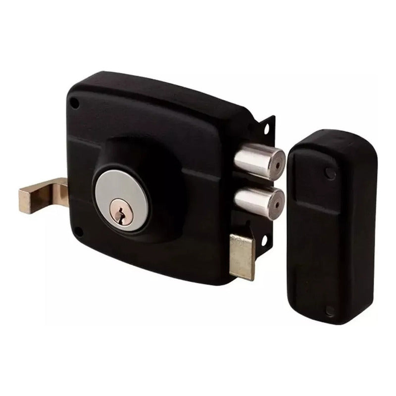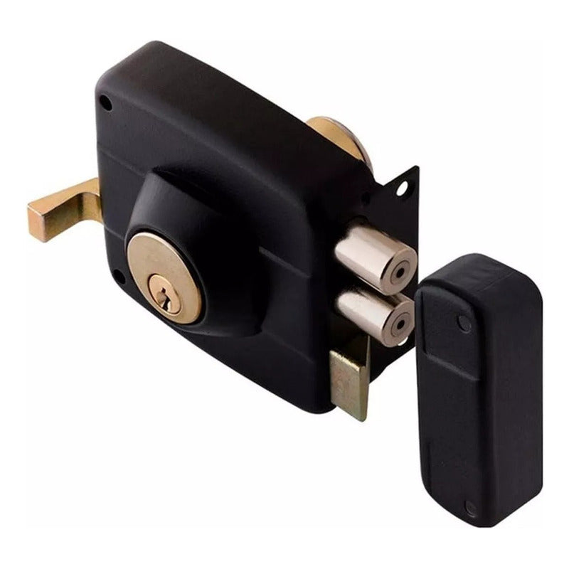 Chapa Cerradura Sobreponer Doble Cerrojo Porton Con Cilindro Negra