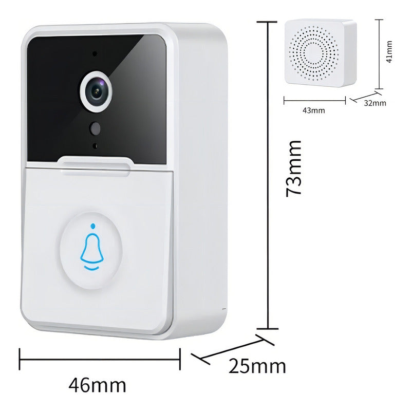Este Timbre Cámara Wifi de Seguridad Video Portero Inalámbrico Smart cuenta con un mensaje bidireccional de voz y audio. Está equipado con un sensor IRE pasivo, que detecta el más mínimo movimiento en la entrada. Cuando alguien presiona el timbre o se encuentra en la puerta de tu casa, recibirás una notificación en tu teléfono móvil. Este dispositivo te proporciona un audio bidireccional claro en tiempo real, permitiéndote ver, escuchar y hablar con los visitantes de inmediato a través de la aplicación del teléfono. Es compatible con dispositivos iOS y Android. Este dispositivo tiene un mayor tiempo de espera ya que está alimentado por tres pilas secas AAA (batería no incluida), combinadas con un diseño de bajo consumo, la capacidad de resistencia mejora considerablemente. Es compatible con Wi-Fi de 2,4 GHz, el alcance Wi-Fi del videoportero es de hasta 20 m/20 m, se conecta fácilmente a la red Wi-Fi de tu hogar y envía transmisión de video en vivo a tu teléfono. Hasta 4 usuarios pueden ver la transmisión de video, pero solo 1 usuario puede usar el intercomunicador directo. Cuenta con Full HD y visión nocturna, la cámara de video con timbre te proporciona imágenes y grabaciones de video nítidas. Las luces IR incorporadas te permiten ver con claridad incluso en la oscuridad. El IR-CUT inteligente detecta automáticamente la luz ambiental y cambia al modo de visión nocturna. También puedes ver las esquinas fuera de la vista con un gran ángulo de 60. Es fácil de instalar y usar, esta cámara con timbre inalámbrico tarda menos de 5 minutos en configurarse sin tener que usar herramientas complicadas. El timbre se puede controlar mediante APP, modelo de trabajo automático, inteligente y portátil. Portátil en tamaño y peso. El paquete incluye: cámara de timbre* 1 máquina Ding-dong para interiores* 1 cable de datos* 1 pegamento 3M* 1 bolsa de tornillo* 1 manual* 1