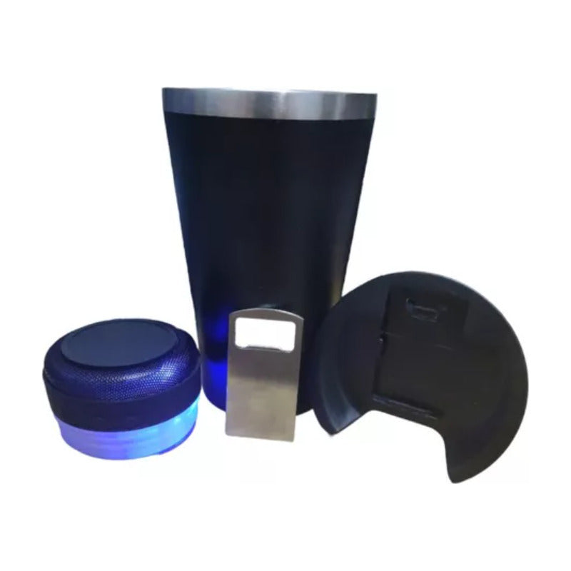 Vaso Termino Cerveza 473 Ml Con Parlante Y Abre Botellas Rosa