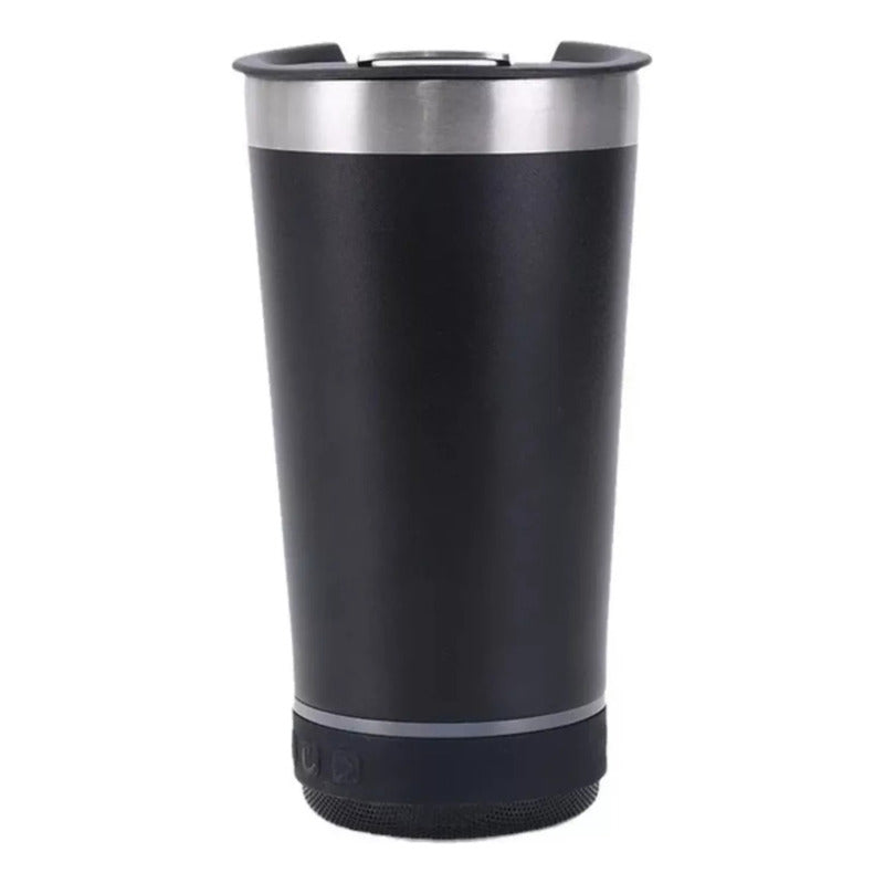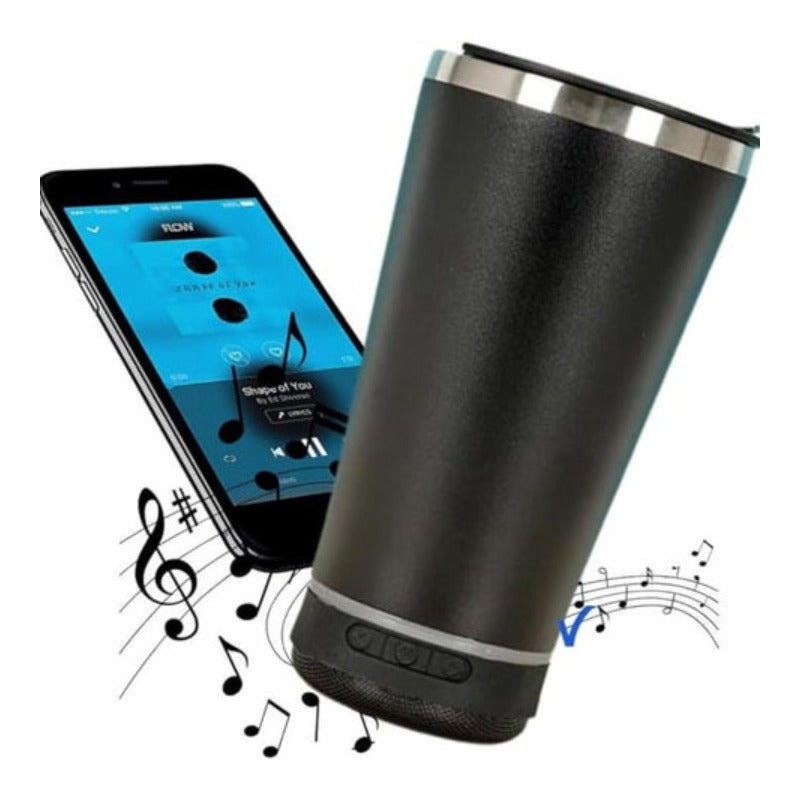 16.9 oz/ 473 ML. Parlante bluetooth Conexion inhalambrica Luz de 7 colores Diseño de boca llenado de hielo Material de acero inoxidable Doble capa de acero Libre de BPA Facil de limpiar. Está diseñado para caber en cualquier portavasos estándar de coche para que puedas llevarlo contigo a tu lugar favorito para vibrar. El altavoz desmontable significa que puedes mantener tu música donde quieras mientras llevas tu agua donde la necesites. El altavoz es resistente al agua. Por favor, no sostengas bajo el agua ni reproduzcas música. Esto dañará el altavoz y la electrónica.