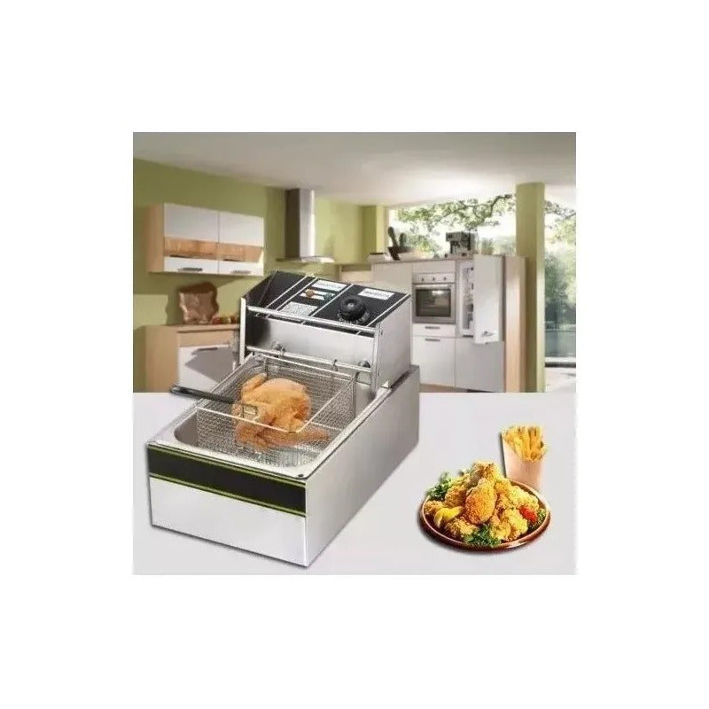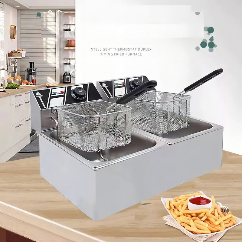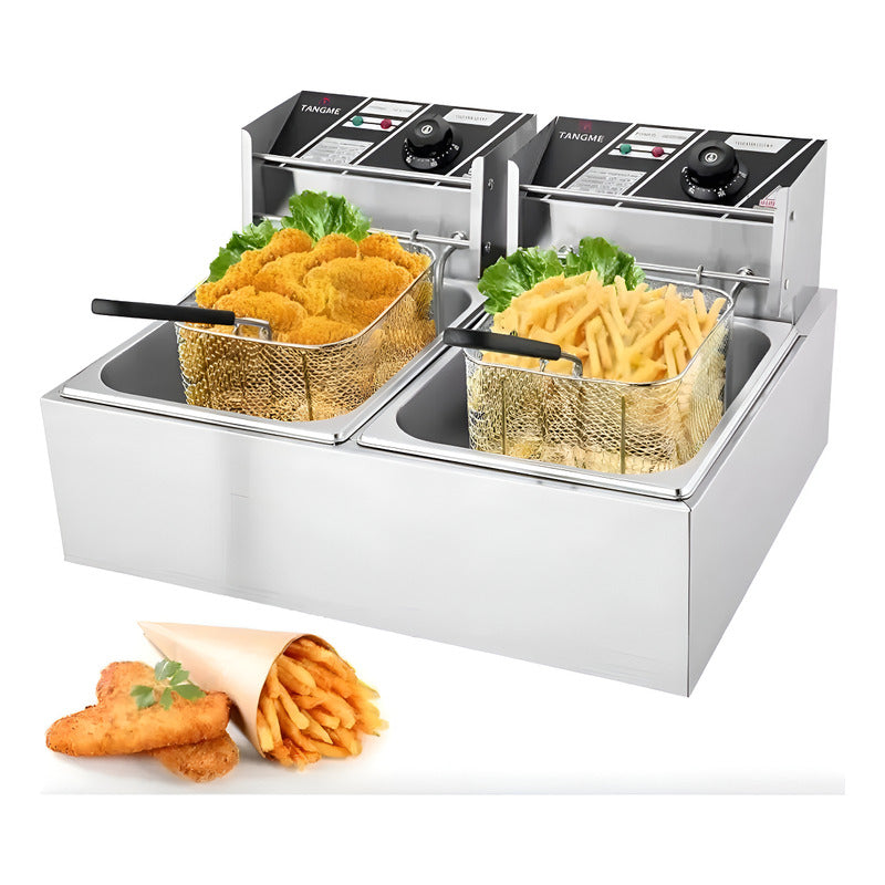 Freidora Doble Electrica De 12 Litros Aceite Termostato Plateado