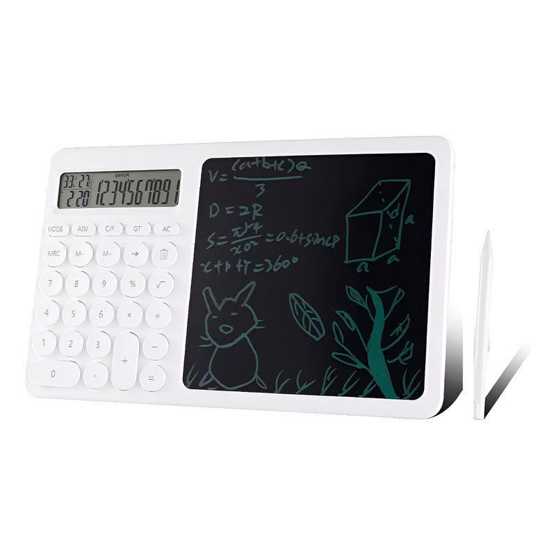 Calculadora 2 en 1 y diseño de tableta de Escritura: la calculadora es una combinación de cálculo y cuaderno con un lápiz óptico, le permite escribir y calcular simultáneamente, por lo que es una herramienta perfecta para profesionales ocupados. Alimentado por batería: la calculadora con función de tiempo está alimentada por 1 CR2032 y 2 baterías LR1130 de la piezas, que ayudan a administrar su tiempo de manera efectiva, asegurando que no se pierda ninguna fecha límite o cita importante. Saludable y ecológica: la calculadora con Bloc de notas no solo es ecológica, sino que también promueve una experiencia de escritura más saludable al reducir la fatiga ocular y la fatiga de las manos asociada con la escritura tradicional en papel y bolígrafo. Conveniente y portátil: es fácil llevar su calculadora con la tableta de escritura sobre la marcha, lo que garantiza que siempre tenga su calculadora y Bloc de notas de confianza con usted. Amplia aplicación: la calculadora básica con tableta la convierte en una herramienta ideal para cualquier persona que necesite realizar cálculos rápidos y precisos, desde estudiantes y profesores hasta profesionales de negocios y contadores. Especificación: Material del producto: ABS Tamaño del producto: 27x17x1,5/1cm-10,62x6,69x0,59/0,39 pulgadas (largo x ancho x Alto) Tamaño de la pantalla: 14,7x14,7x20,3 cm/5,78x5,78x7,99 pulgadas (largo x ancho x diagonal) Dígito: 10 Peso neto: 300g/10,58 oz Batería: 1x3V 200mAh CR2032 + 2x1,5 V 70mAh LR1130 Color del producto: Blanco Tamaño del paquete: 29,3x19,1x2,3 cm/11,53x7,51x0,9 pulgadas (largo x ancho x Alto) Peso del paquete: 522,5g/18,43 oz Lista de embalaje 1 x calculadora 1 bolígrafo de escritura Garantía del vendedor: 3 meses