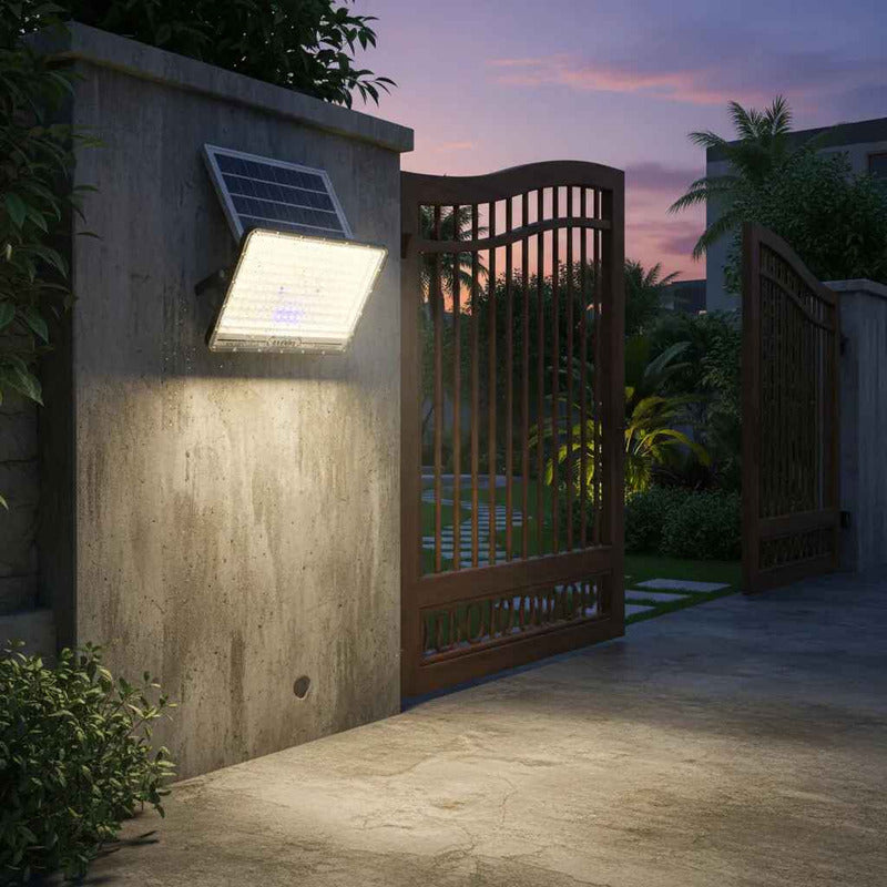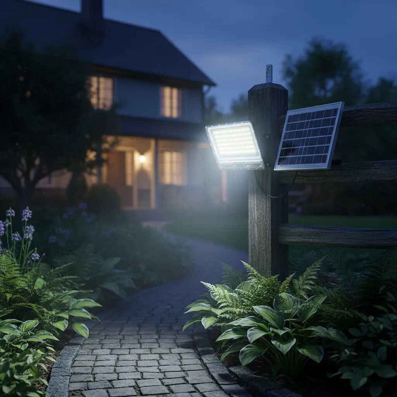 El Pack x2 Reflector solar 1500W con panel separado y control es la solución ideal para quienes buscan iluminar espacios exteriores con eficiencia y sostenibilidad. Diseñado con un potente sistema solar de 1.5 kW, este reflector ofrece una luminosidad excepcional sin depender de la red eléctrica, lo que lo convierte en una opción amigable con el medio ambiente. El reflector está elaborado en plástico de alta calidad, lo que garantiza durabilidad y resistencia a diferentes condiciones climáticas. Con una clasificación IP66, es completamente resistente al polvo y al agua, asegurando un funcionamiento óptimo en cualquier entorno. Además, su diseño montable permite una instalación sencilla y versátil en jardines, patios, y caminos. La facilidad de uso se potencia con el control remoto incluido, que permite encender, apagar y ajustar la iluminación desde la comodidad de su hogar. Este reflector solar es especialmente eficiente, con una clasificación energética A+, lo que asegurará un consumo reducido de energía y un impacto mínimo en su factura eléctrica. Ya sea para proporcionar seguridad al iluminar áreas oscuras, o para resaltar características arquitectónicas de su propiedad, este pack de reflectores solares se adapta a sus necesidades y asegura un entorno iluminado y acogedor en todo momento.
