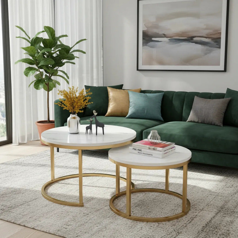 Incluye dos mesas de diferentes tamaños que se complementan entre sí: Mesa grande: 70 cm de diámetro x 40 cm de alto. Mesa pequeña: 50 cm de diámetro x 34 cm de alto. Prácticas, funcionales y decorativas, estas mesas son ideales para la sala de estar, aportando un toque moderno y sofisticado a tu hogar. Transforma tu sala de estar con la Mesa Auxiliar de Centro Doble, una solución práctica y moderna que se adapta a cualquier espacio. Con un diseño elegante en melamina, esta mesa ofrece un toque contemporáneo que complementará tu decoración. Sus dimensiones la hacen ideal para usos diversos, mientras que proporciona funcionalidad sin ocupar demasiado espacio. La mesa requiere ensamblado, lo que te permitirá disfrutar de una actividad gratificante al armarla. Incluye un manual y todos los accesorios necesarios para facilitar el proceso. Con su acabado melamínico, es fácil de limpiar y mantener, convirtiéndola en una opción práctica para el día a día. Con un peso de solo 3 kg, esta mesa es ligera y fácil de mover, permitiéndote reorganizar tu espacio según desees. La estructura de cuatro patas garantiza estabilidad y durabilidad en su uso. Si buscas un mobiliario que combine estética y funcionalidad, la Mesa Auxiliar de Centro Doble es la elección perfecta.