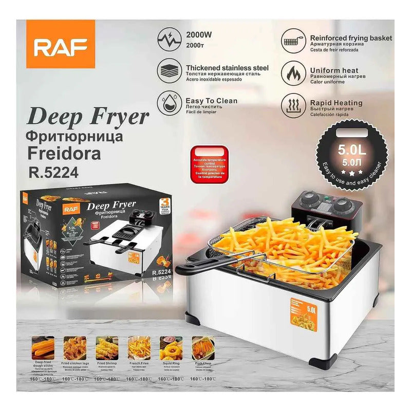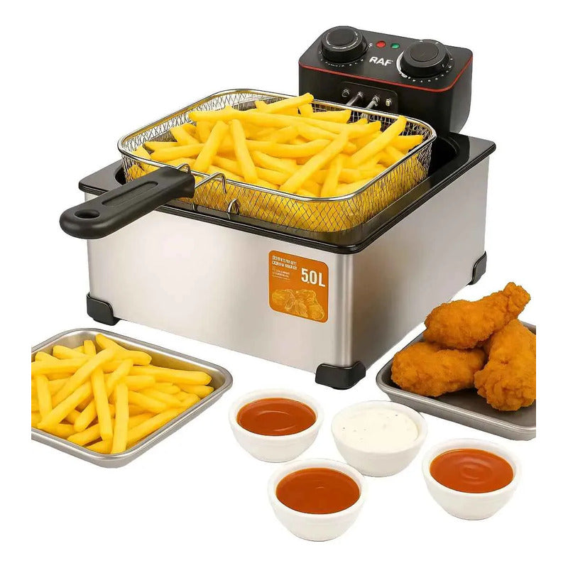 Freidora Eléctrica 5lts 2000w Acero Inoxidable Raf R.5224 Plateado 50 Hz/ 60 Hz