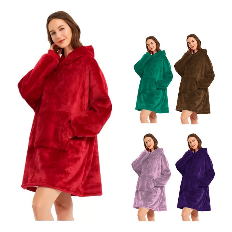 Poleron Felpa Bata Sherpa con Capucha - Manta Frazada Chiporro. (Poleron con chiporro en su interior). ¡Mantente a temperatura ideal este invierno! Esta maravillosa manta-polerón con capucha ha sido objeto de muchos comerciales de TV, y en Chile Tendencia ya lo tenemos disponible para ti. Es de una talla única extra grande para que todos puedan disfrutar. Se destaca por sobre las mantas y frazadas tradicionales porque: 1.- No se sale: Muévete libremente sin perder el calor que te entrega 2.- Úsala en el exterior: Es ideal para ir de camping o actividades en el exterior 3.- Material súper-calentito: Su combinación de forro polar y poliéster hacen que sea especialmente rica 4.- Talla única apta para todos: Es extra grande, por lo que pueden usarla desde pequeñitos hasta los más grandes 5.- Su bolsillo permite que mantengas tus manos calentitas en todo momento